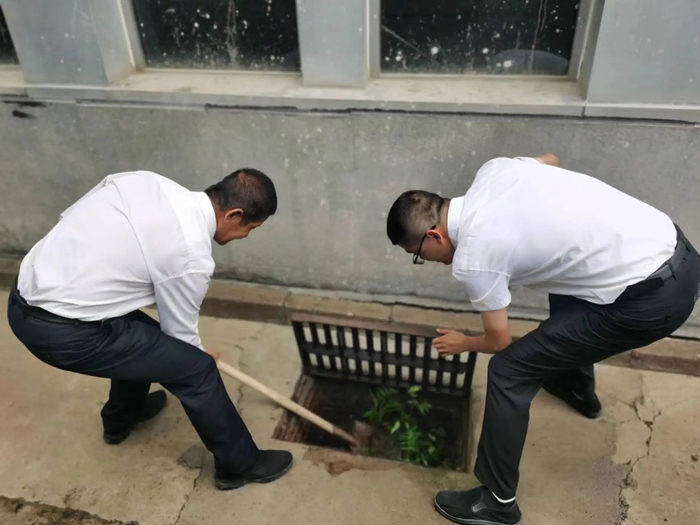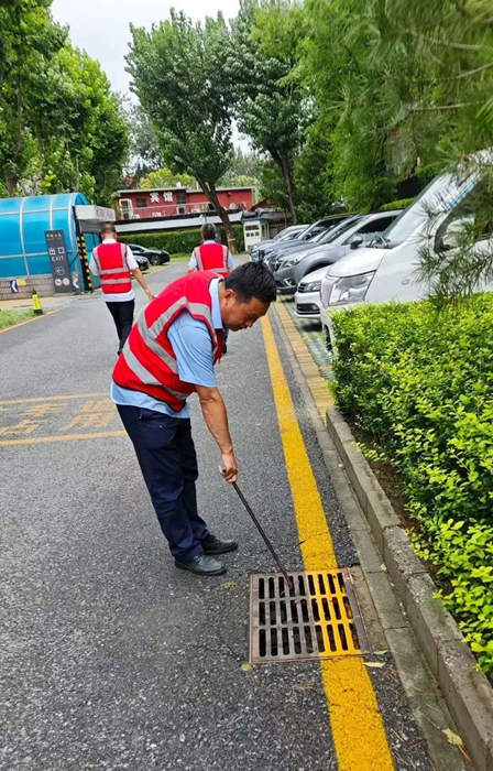 在接到暴雨紅色預(yù)警后,各事業(yè)部迅速行動,對樓宇屋面、排水管道、下水井等進行細致檢查,及時清理雜物,同時各事業(yè)部迅速將防汛物資補充到可能發(fā)生汛情的低洼位置,以便出現(xiàn)險情第一時間救援。